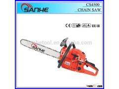 | Place of Origin: | Zhejiang China (Mainland) | | Brand Name: | SANHE | | Model Number: | 64510 | | Power Type: | Petrol / Gas | | Type: | Gasoline chainsaw | | Feature: | 2-Stroke, Forced Air Cooling, Single Cylinder | | Certification: | CE/GS/EUR II | | Engine: | 2-stroke,single-cylinder,air-cooled | | Displacement: | 45CC | | Standard guide bar size: | 18'' | | Chain pitch: | 0.325'' | | Chain gauge: | 0.058'' | chain saw